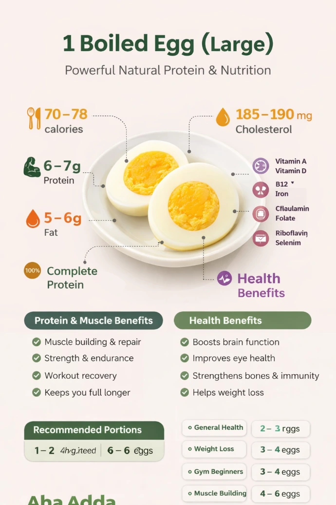 A single boiled egg is a power-packed natural food rich in high-quality protein, essential vitamins, and healthy fats. It is one of the best natural protein sources for muscle growth, recovery, and overall health.